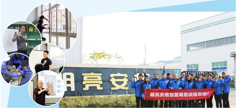 明亮安格開設培訓班,以成熟的培訓機制,特聘專業(yè)講師和優(yōu)秀加盟商為加盟商開展企業(yè)文化、產(chǎn)品知識、測量安裝、銷售技巧、活動策劃、市場推廣、渠道拓展、公關(guān)禮儀等專題培訓。